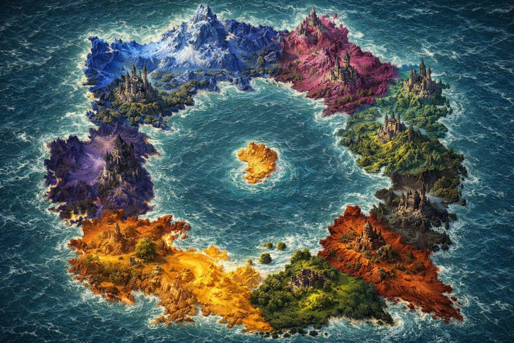 The realm of Montios is defined by its harsh, mountainous terrain of rock, ice, and snow, reflecting the strength and endurance of its people. Its natives wield control over these elements, using their power to shape both the land and their survival within it. Though less is known about its inner workings, Montios is understood as a resilient and formidable realm, where strength and adaptability are essential to life.
